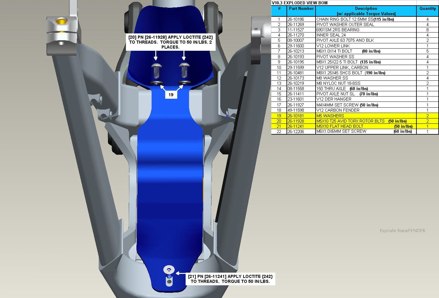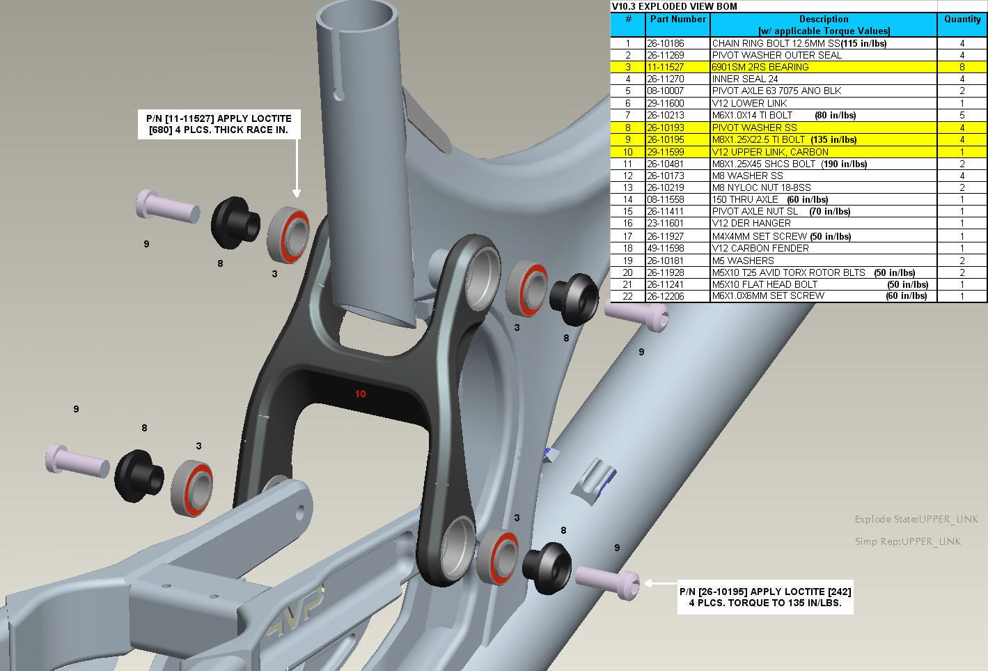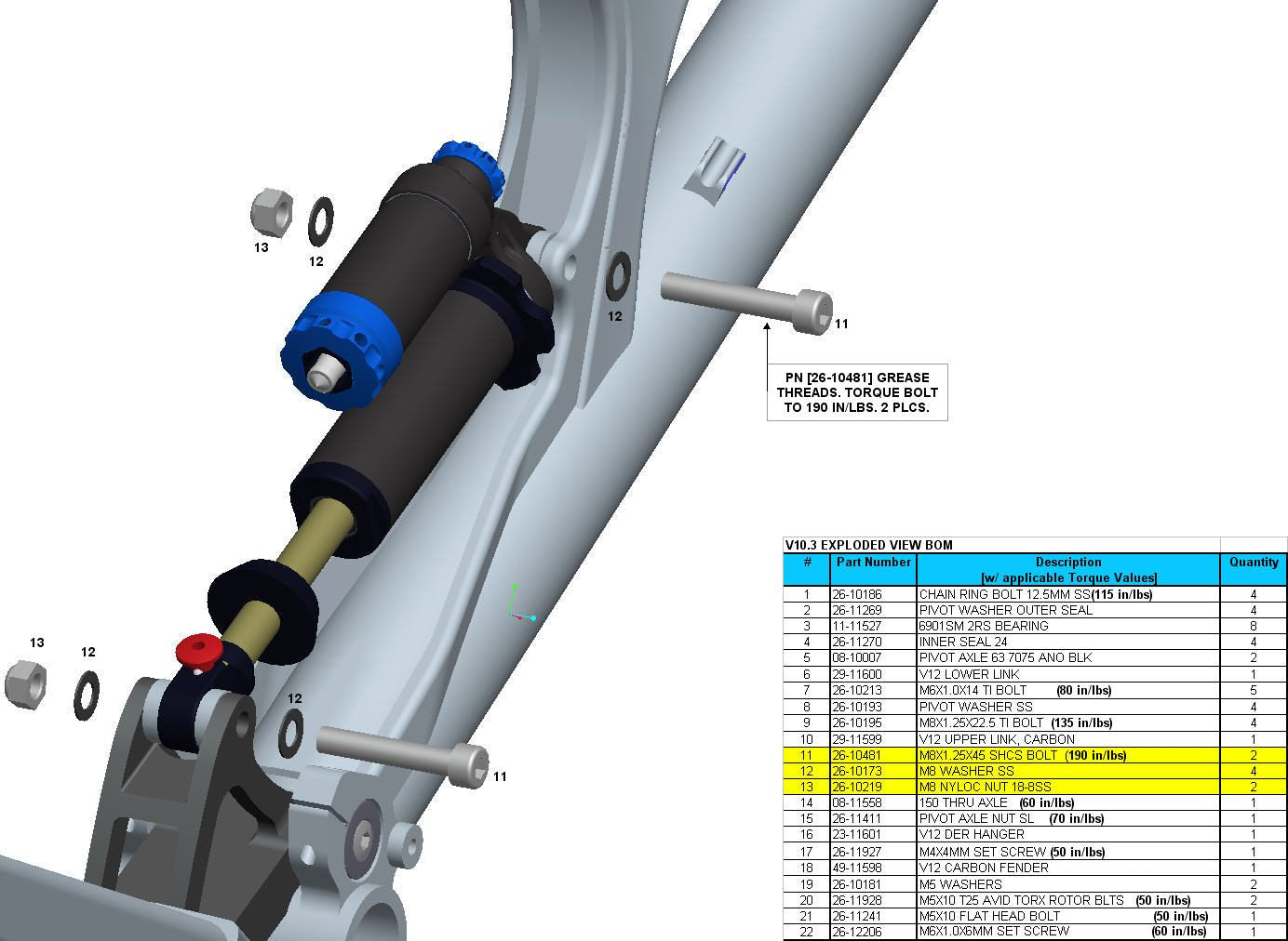Lower Pivot Bolts Lower Main Pivot Chainring Bolts (4) Loctite 242 115 inch lbs -