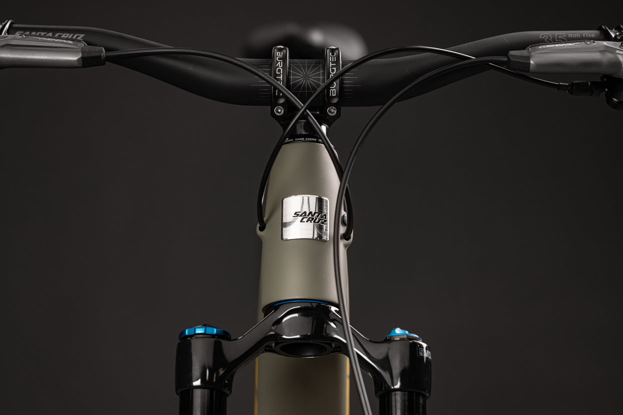 Upgraded wheels, headset, and dropper post. Upgraded suspension with more adjustment, SRAM Eagle cable-operated drivetrain and four-piston SRAM G2 brakes.