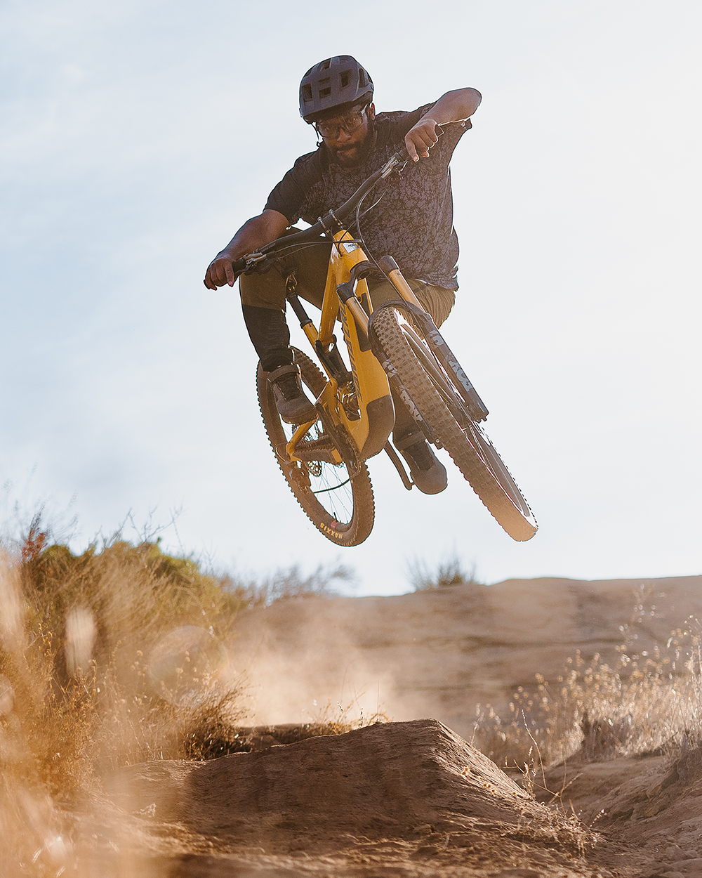 Beefier parts for aggressive terrain. Fox 38, Float X2 rear shock, mechanical SRAM T-Type 90 Transmission, super powerful Maven brakes and Maxxis tires.