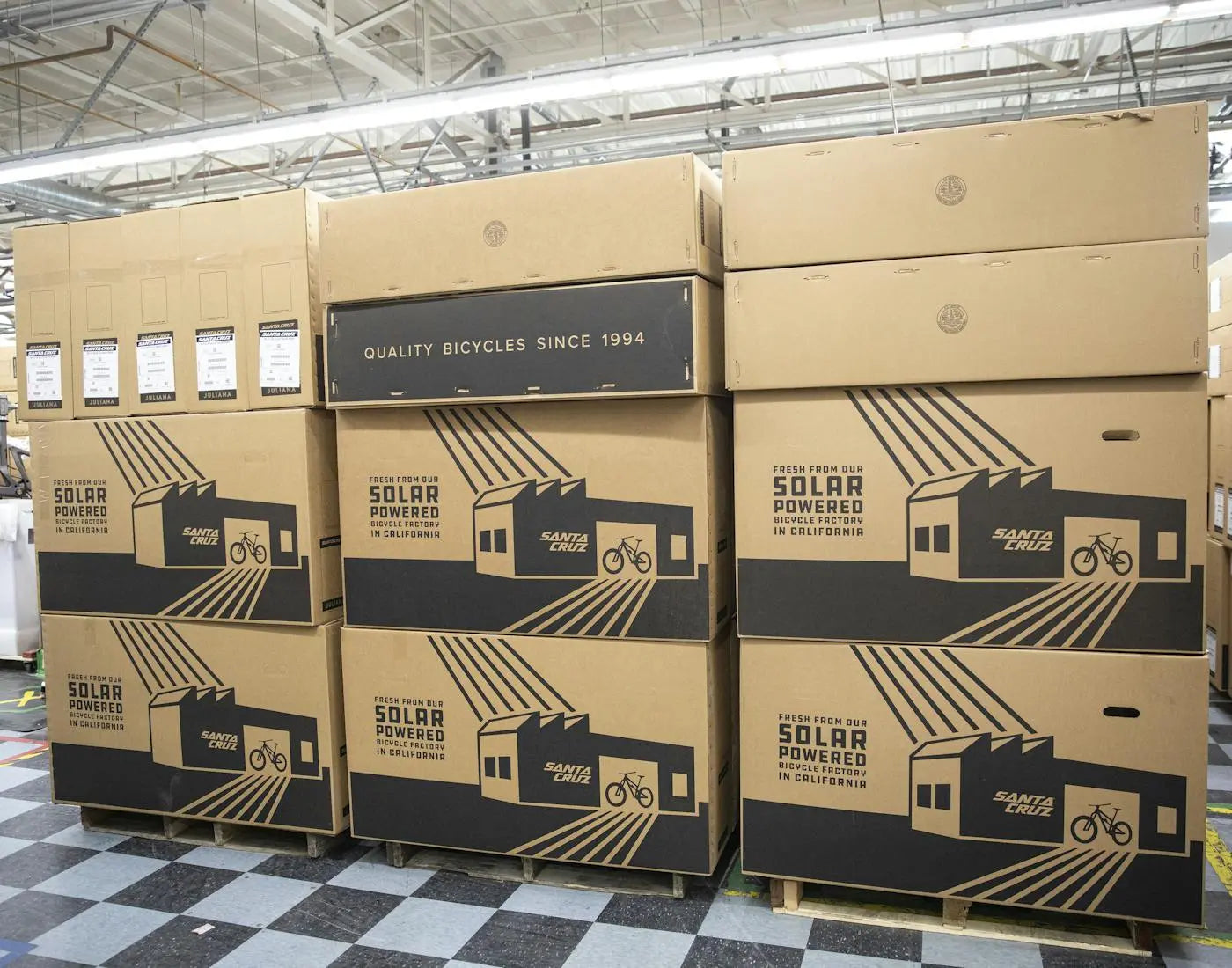 Tous les vélos que nous vendons en Amérique du Nord sont assemblés ici, dans notre usine de Santa Cruz, en Californie. Toute l'usine est fournie en électricité par une vaste surface de panneaux solaires installés sur le bâtiment et au-dessus du parking des employés.Nous réduisons aussi au maximum notre consommation de plastique et de mousse pour l'emballage en privilégiant du papier et du carton facilement recyclable. Nous faisons ça depuis les débuts en 1994, cherchant constamment à s'améliorer. Ce sont de petites choses qui ensemble font la différence.