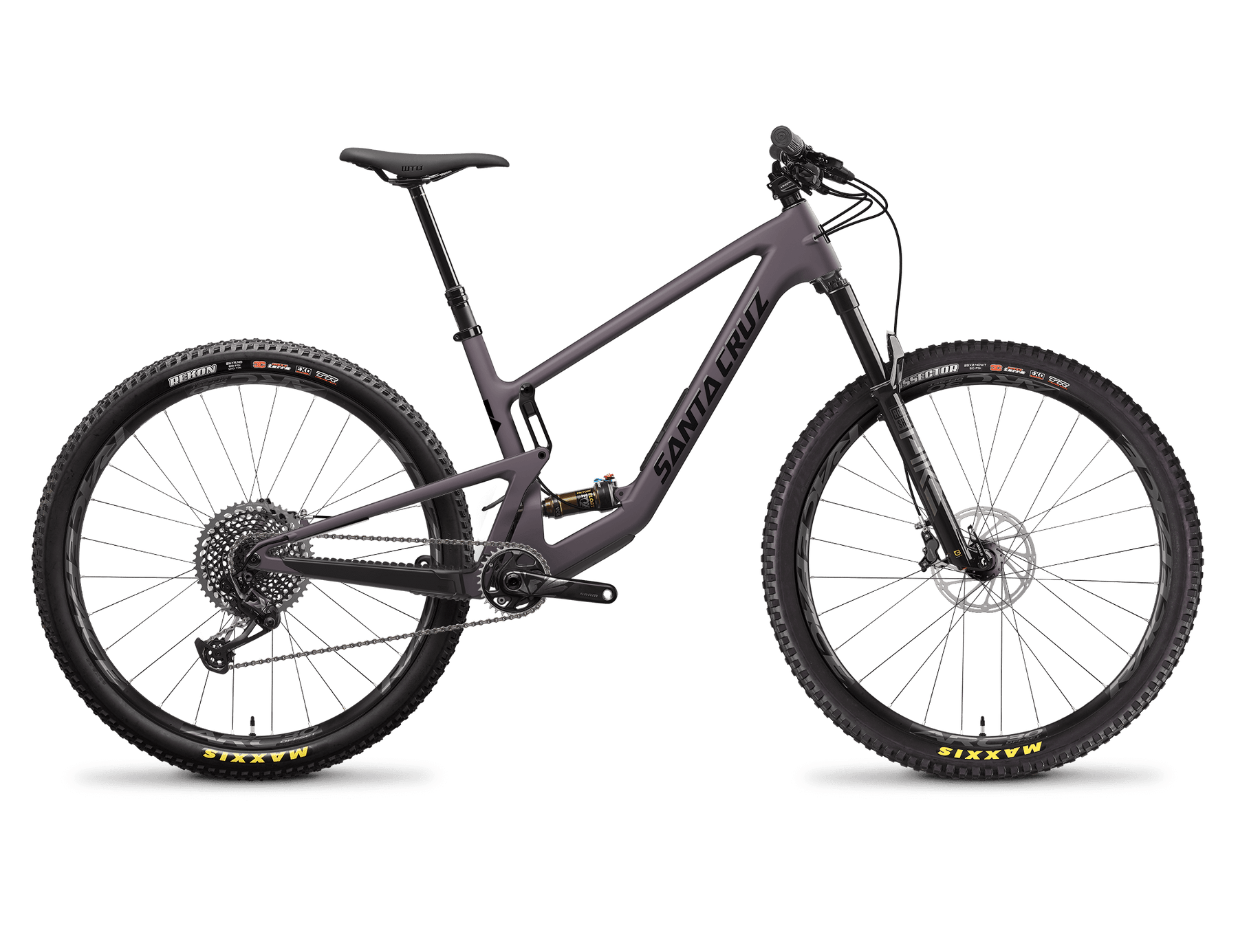 Cadre carbone CC, transmission électronique SRAM X0 T-Type, freins SRAM 4 pistons et suspensions haut de gamme.