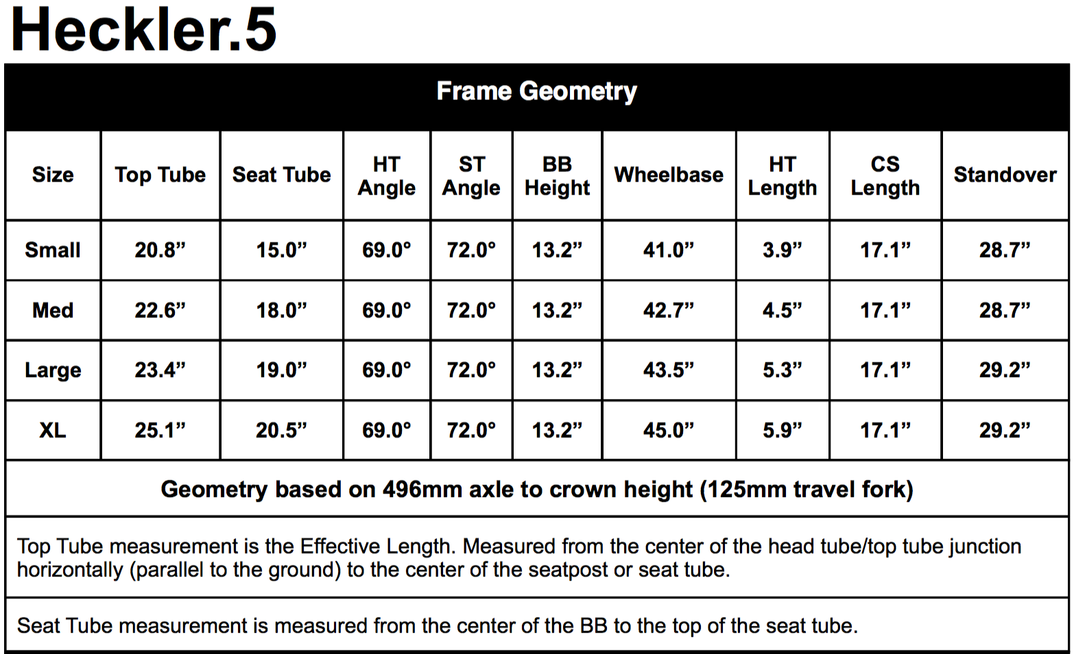 | Rear Shock Notes | All versions of the Heckler.5 can run 7.875" x 2.0” shock or 7.875" x 2.25” - Both are compatible (2.0” = 125mm rear wheel travel - 2.25” = 143mm rear wheel travel ) |