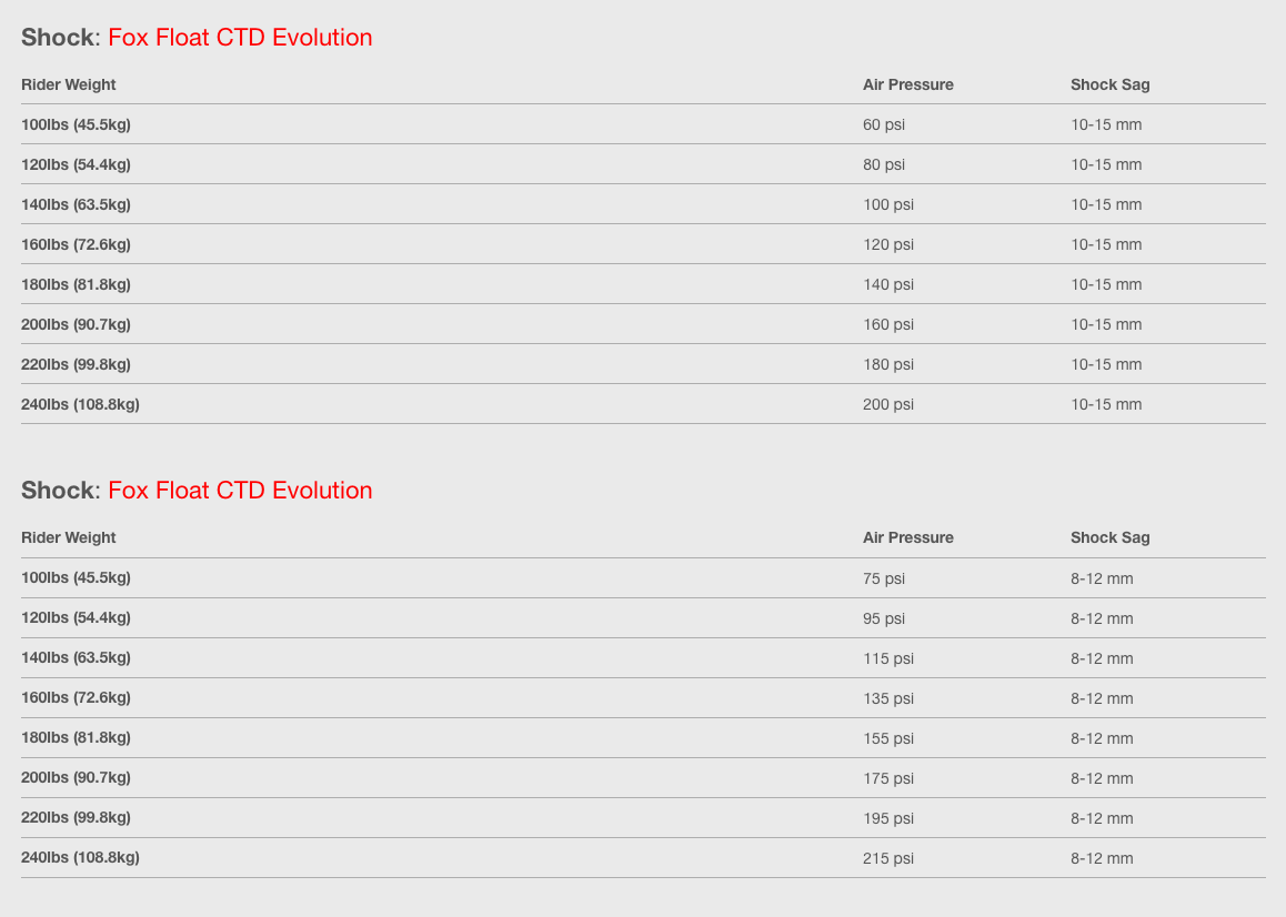 | Rear Shock Eye-to-Eye | 165mm (Small and Medium) 200mm (Large and Extra Large) |