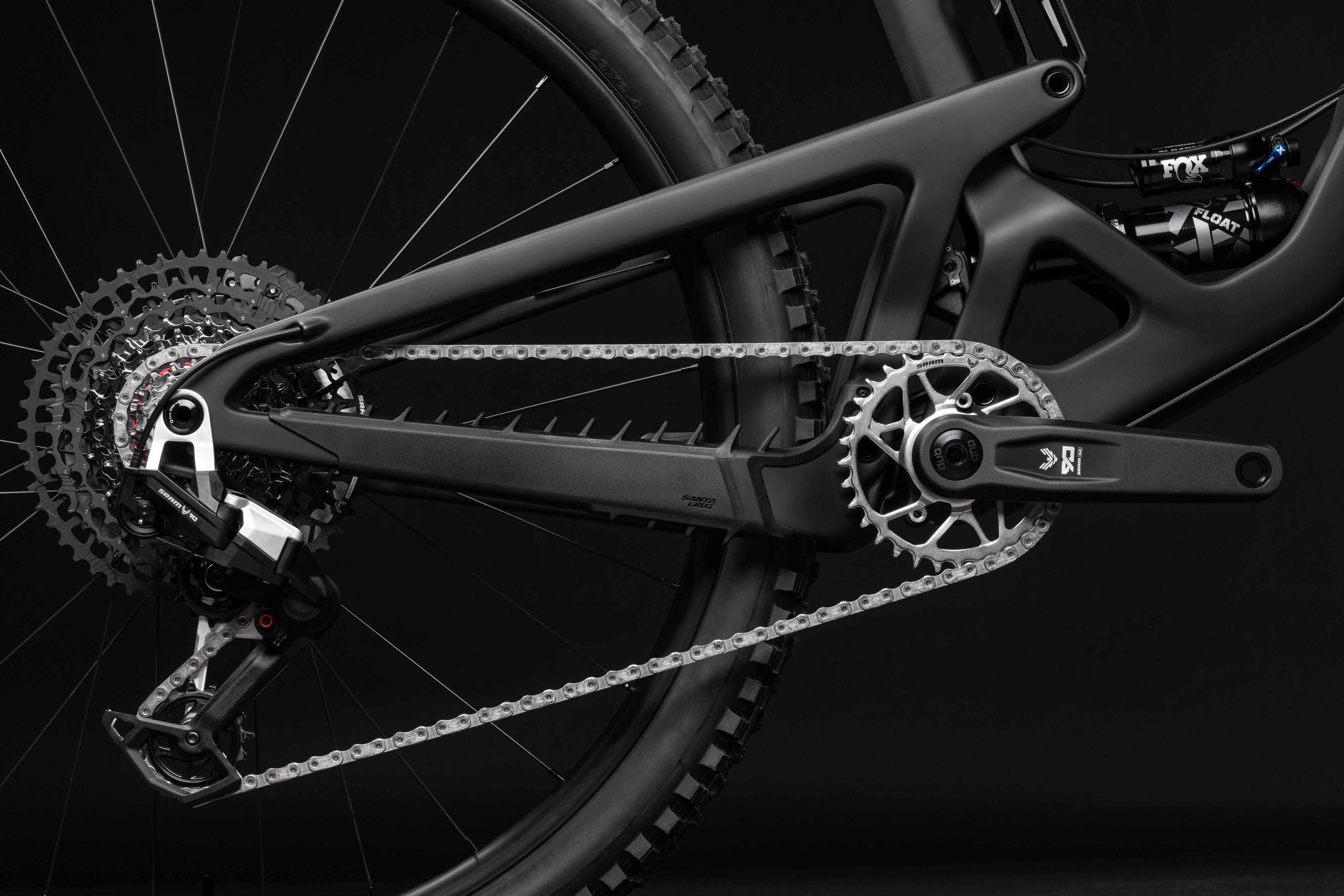 The workhorse. Upgraded hubs, headset, and dropper post. Upgraded suspension with more adjustment, SRAM Eagle cable-operated drivetrain and four-piston SRAM brakes.